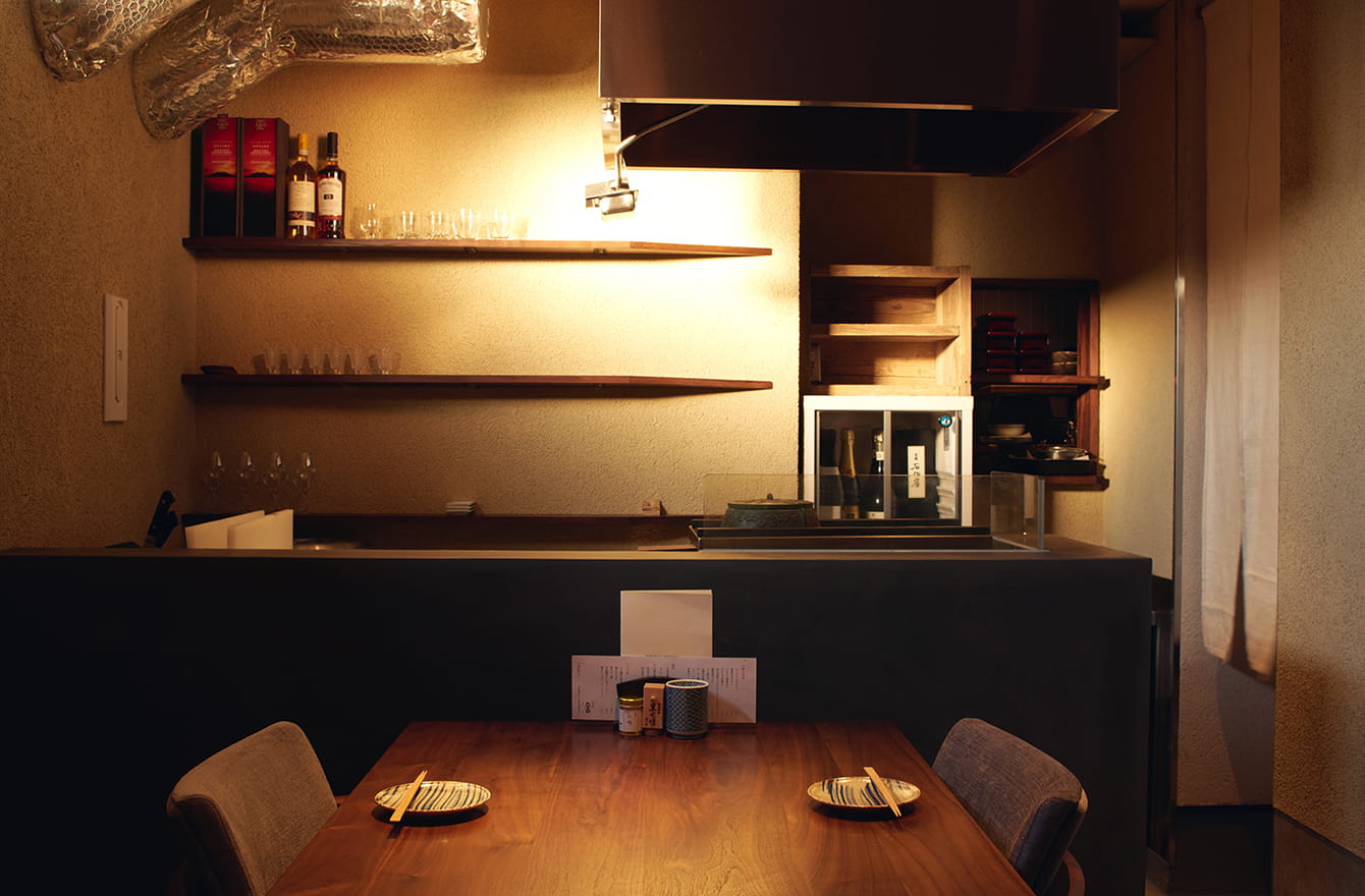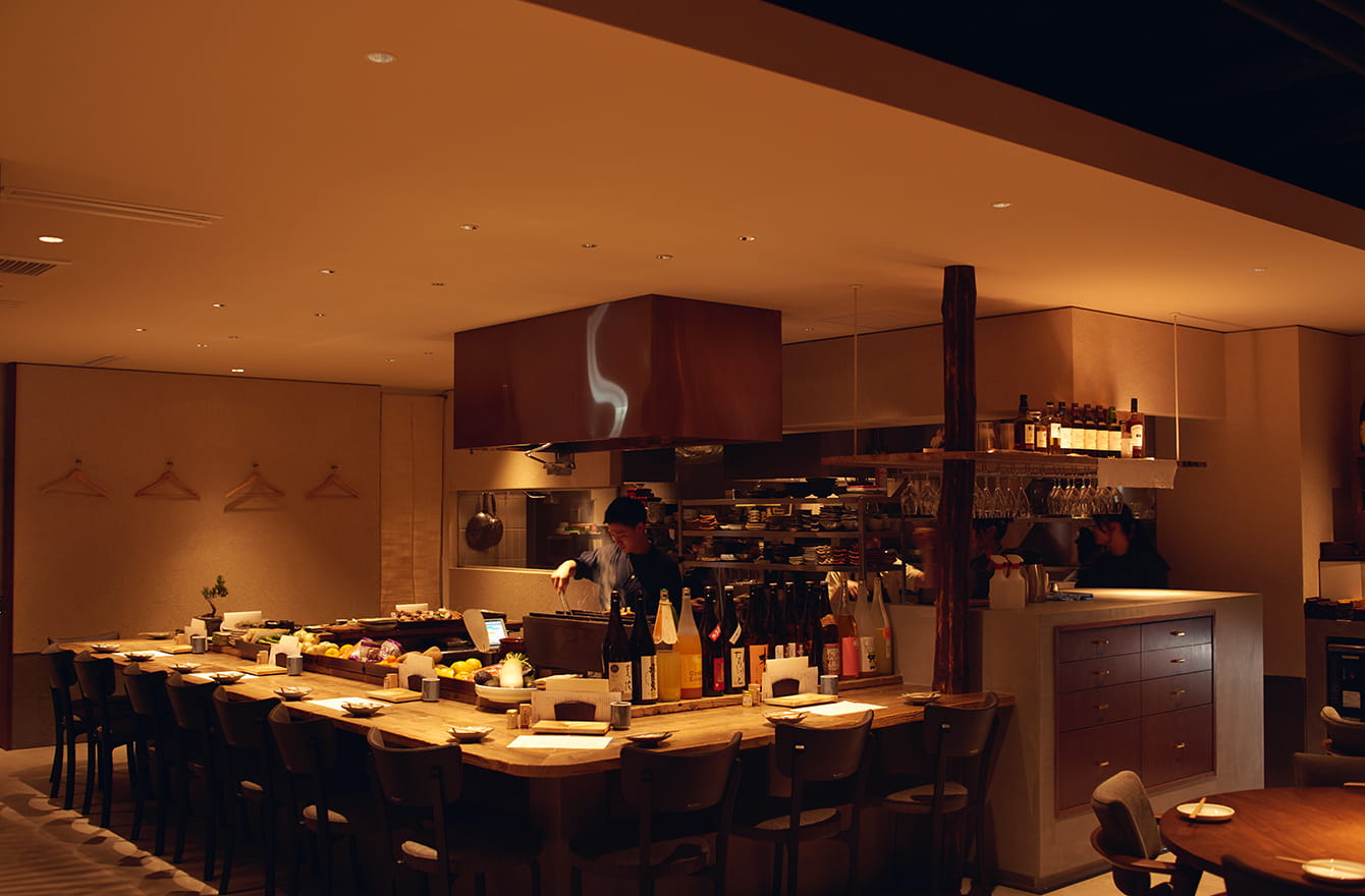 焼き台を囲んだコの字カウンターは